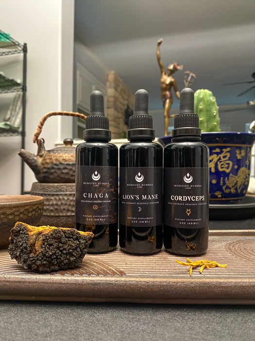 3 Duel Extract Spagyric Tinctures of Chaga, Cordyceps & Lions Mane. A Trio ment to be used da...